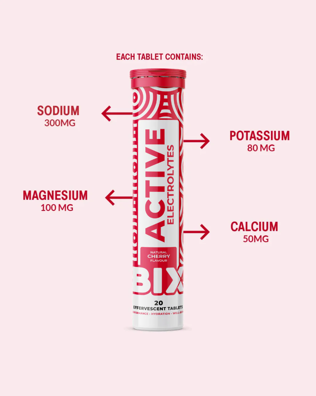 – Βέλτιστη ισορροπία των 4 κύριων ηλεκτρολυτών: Νάτριο, Μαγνήσιο, Κάλιο και Ασβέστιο- Υψηλής ποιότητας συστατικά- Καθαρή φυσική γεύση- Κατασκευάζεται στη Γερμανία σε εγκαταστάσεις πιστοποιημένες με GMP.- Διατίθεται σε σωληνάριο των 20 δισκίωνΤο BIX ACTIVE περιέχει τους 4 κύριους ηλεκτρολύτες Νάτριο, Μαγνήσιο, Κάλιο, Ασβέστιο και έχει σχεδιαστεί για να βελτιώνει τη φυσική σας απόδοση και τη γενική ευεξία, διατηρώντας σας ενυδατωμένο κατά τη διάρκεια της φυσικής δραστηριότητας και κατά τη διάρκεια της ημέρας. Το BIX ACTIVE περιέχει συστατικά υψηλής ποιότητας και έχει καθαρή, φυσική γεύση.Σχεδιασμένο για ενυδάτωση οποιαδήποτε στιγμή της ημέρας και κατά τη διάρκεια της φυσικής δραστηριότητας.Κατασκευάζεται σε εγκατάσταση με πιστοποίηση GMP στη Γερμανία χρησιμοποιώντας μόνο καθαρά και υψηλής ποιότητας συστατικά.- Vegan, χωρίς γλουτένη, χωρίς GMO και περιέχει μόνο φυσικά χρώματα και γεύσεις από σκόνη χυμού κόκκινων τεύτλων. – Χωρίς ζάχαρη, χωρίς λιπαρά και πολύ χαμηλή σε θερμίδες.
