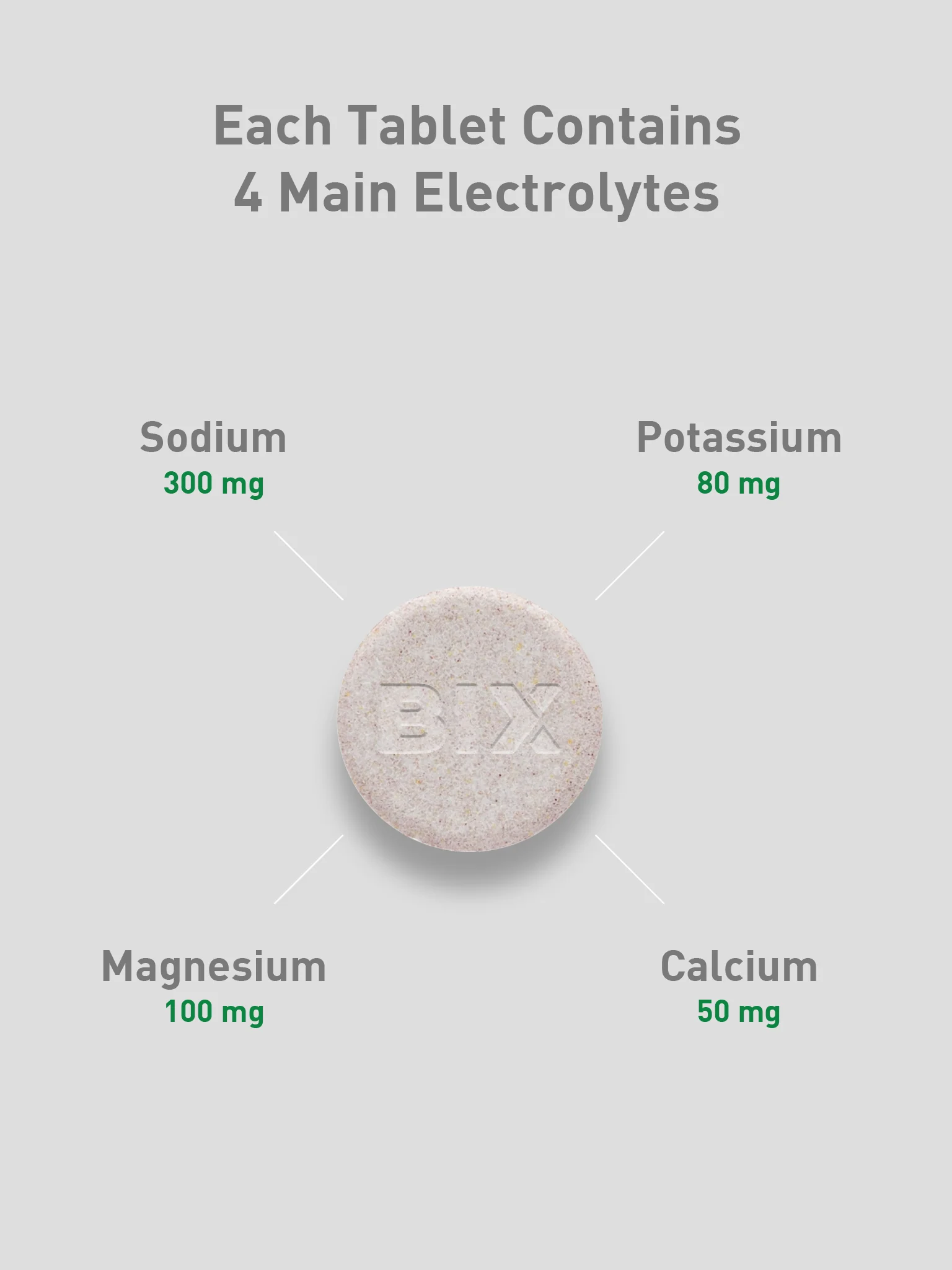 – Βέλτιστη ισορροπία των 4 κύριων ηλεκτρολυτών: Νάτριο, Μαγνήσιο, Κάλιο και Ασβέστιο- Υψηλής ποιότητας συστατικά- Καθαρή φυσική γεύση- Κατασκευάζεται στη Γερμανία σε εγκαταστάσεις πιστοποιημένες με GMP.- Διατίθεται σε σωληνάριο των 20 δισκίωνΤο BIX ACTIVE περιέχει τους 4 κύριους ηλεκτρολύτες Νάτριο, Μαγνήσιο, Κάλιο, Ασβέστιο και έχει σχεδιαστεί για να βελτιώνει τη φυσική σας απόδοση και τη γενική ευεξία, διατηρώντας σας ενυδατωμένο κατά τη διάρκεια της φυσικής δραστηριότητας και κατά τη διάρκεια της ημέρας. Το BIX ACTIVE περιέχει συστατικά υψηλής ποιότητας και έχει καθαρή, φυσική γεύση.Σχεδιασμένο για ενυδάτωση οποιαδήποτε στιγμή της ημέρας και κατά τη διάρκεια της φυσικής δραστηριότητας.Κατασκευάζεται σε εγκατάσταση με πιστοποίηση GMP στη Γερμανία χρησιμοποιώντας μόνο καθαρά και υψηλής ποιότητας συστατικά.- Vegan, χωρίς γλουτένη, χωρίς GMO και περιέχει μόνο φυσικά χρώματα και γεύσεις από σκόνη χυμού κόκκινων τεύτλων. – Χωρίς ζάχαρη, χωρίς λιπαρά και πολύ χαμηλή σε θερμίδες.